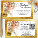 Merci pour votre carte de visite de commande avec un tableau d'une élégante dame boho avec des fleurs dans ses cheveux, encadré par une doublure de parties scintillant or. Vous pouvez ajouter votre logo personnalisé et au dos votre code QR. Egalement 3 icônes de médias sociaux sont disponibles. Vous pouvez choisir les modèles que vous souhaitez garder en fonction de vos besoins.