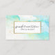 Ce carte de visite créatif est doté d'un arrière - plan d'aquarelle turquoise/bleu aqua avec de faux éclats de poussière d'or pour un design chic et abstrait. Personnalisez le texte élégant du script avec votre nom ou nom d'entreprise. Cette carte recto verso offre un grand espace à l'arrière pour vos coordonnées et vos médias sociaux. Art et design originaux © 1201AM Design Studio | www.1201am.com