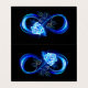 Luminous infinity symbol with glowing, beautiful, lushly blooming rose made of blue flames on black background.
