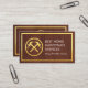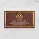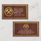 A brown wood layer is encapsulated by a faux gold rectangular frame. On the left is a gold hammer logo you can use. Beside it stands your business name and a slogan caption option which you can change.