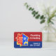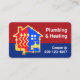 A red and blue layered cover (heat and water) features a gold faucet-piping home frame design. At the top is your business name with the contact details near the base of the card; Change the caption to the business name to suit your own service needs.