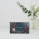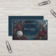 Enchant clients and colleagues with this captivating gothic fairytale business card. The design features a moody, dark midnight blue backdrop resembling a starry night sky, with subtle twinkling celestial details. A striking golden crescent moon hangs elegantly in the upper right, adding a mystical touch. Lush, vintage-style roses in rich burgundy, deep crimson, and ethereal dusty white hues anchor the corners, surrounded by delicate blue and white wildflowers and dark, whimsical foliage, giving the artwork a painterly, opulent feel. The entire scene is framed by a sophisticated thin double-gold geometric frame, creating a luxurious space for your brand information. This artistic and atmospheric design is perfect for tarot readers, astrologers, spiritual advisors, or fantasy authors seeking a mystical aesthetic. It is also ideally suited for gothic boutique owners, bespoke florists, or event planners specializing in celestial, dark romance, or enchanted forest themes, as well as fine art photographers with a unique vision. This elegant design is also perfectly suited for use as a creative thank you card, loyalty card, boutique price tag, or a mini-invitation for any special event.