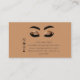 La représentation artistique d'yeux fermés avec d'épais sourcils noirs et des ombres dorées brillantes fait une première impression frappante. C'est un design qui respire le glamour et l'élégance, ce qui laisse croire que l'entreprise peut être liée à la beauté ou à la mode. Voici pourquoi ce carte de visite se démarque : Appel Visuel : L'ombre des yeux et les sourcils audacieux captent l'attention immédiatement. C’est un design visuellement captivant qui donne une impression durable aux feuilles. Informations pratiques : Sous les yeux de l'artiste, vous trouverez tous les coordonnées essentielles (numéro de téléphone, courriel, site Web et adresse), soigneusement organisées avec des icônes, ce qui vous permet d'entrer facilement en contact. Fonctionnel et esthétique : Cette carte équilibre magnifiquement fonctionnalité et esthétique. Il fournit toutes les informations nécessaires d’une manière à la fois fonctionnelle et visuellement agréable. Contes : Le design raconte une histoire de sophistication et de style, suggérant que l'entreprise valorise la beauté et le détail.