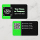 Attraper l'attention vert citron et noir créent un combo attrayant pour votre petite marque biz. Il est simple d'ajouter votre logo à l'avant et le code QR à l'arrière pour un accès facile à votre magasin ou site en ligne. Avec un texte en gros titre et un texte de slogan d'un côté, et quatre champs de texte personnalisés pour les coordonnées de l'autre, ce design tape-à-l'oeil et à fort impact vous a couvert !