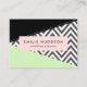 Carte de visite élégante, élégante et raffinée, avec motif en zigzag (chevron) gris et blanc avec des touches de couleur menthe et noire. Design moderne et tendance, parfait pour les amateurs de zigzag.