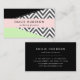Carte de visite élégante, élégante et raffinée, avec motif en zigzag (chevron) gris et blanc avec des touches de couleur menthe et noire. Design moderne et tendance, parfait pour les amateurs de zigzag.