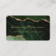 This elegant modern business card features a green watercolor agate design trimmed with sparkly gold faux glitter. Personalize it with your name in light golden handwriting-style script and title and contact information in sans serif font. The green agate image is repeated on the reverse. Rounded corners enhance the luxurious look.