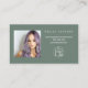 Carte De Visite Green orange script photo logo commander merci
