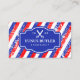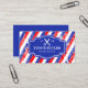 Carte De Visite Grunge Bleu & Rouge Stripes Ciseaux Barbershop