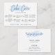 Cake Care Card avec élégante couleur d'eau douce bleue arrière - plan et élégante police de script moderne. Ce modèle de carte de guide de cake bleu pastel comprend les instructions les plus importantes pour l'entretien des gâteaux afin que vos clients sachent comment transporter, stocker et servir au mieux un gâteau. Le gâteau parfait merci carte de visite pour vos boîtes à gâteaux.