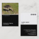 Un modèle de carte de visite avec une moitié inférieure noire bordée de blanc. Le design avant comprend une photo ou une oeuvre d'art dans la partie supérieure. Le même thème est répété à l'arrière sans l'image, permettant la place pour d'autres détails et une personnalisation plus poussée. Les trois motifs carré utilisés comme élément décoratif sur le dos proviennent d'une des polices d'image utiles de Zazzle et peuvent être utilisés comme élément décoratif ou remplacés par votre propre logo ou décoration.