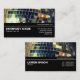 Un modèle de carte de visite/profil moderne et clair avec une image ou une oeuvre d'art dans la moitié supérieure et une moitié inférieure noire décorée d'une règle blanche soulignant l'adresse Web. L'image dans la moitié supérieure peut également être changée. L'envers a le même design. Site Web, nom de l'entreprise et adresse sur le devant avec nom et autres coordonnées sur le dos. Cette carte peut être customisée de différentes façons.