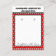 Handmade Jewelry by Name typography in black against white background. Red background with black and white polka dots. Crafted with love written in black script (keep or insert short tagline, or delete to leave area blank). Two Small Circles against white and black framed background. NOTE: Circles are not pre-cut, you will need to use a Small hole punch to make small clean cut holes. Backside has small red heart. Insert telephone number, email address, website, social media handle, as needed. Insert Your Business QR Code for customers to Shop 24/7, or delete as needed. Original Design by TamiraZDesigns.