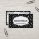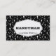 Carte de visite Handyman avec badge rétro et motif de arrière - plan d'outils handyman. La carte est décorée en noir et blanc. Idéal pour un bricoleur, mécanicien auto, menuisier, peintre, électricien ou réparateur d'appareils.