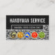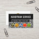 A stylish white box sit at the center demarcating an upper black layer against a stone layered piece. This box houses your contact details with the business name "HANDYMAN SERVICE" at the top.