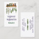 Cartes de visite herbalistes avec impression recto verso. Le front est monté verticalement avec un lieu pour nom personnel avec occupation. Le lettrage est violet foncé et vert. En haut, le design est une étagère en bois d'herbes attachées avec plus d'herbes suspendues à sécher. À l'arrière, ajoutez du texte à deux endroits, horizontalement. Des tiges de romarin divisent le texte modèle. Inclure le nom et l'adresse du magasin, avec les heures d'ouverture, les coordonnées et/ou les emplacements des médias sociaux.
