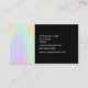 Découvrez le style branché de notre Carte de visite à deux faces Holographique moderne et noir élégant ! Doté d'un design holographique captivant sur le devant qui présente élégamment le nom et le titre ("Artiste du maquillage"), cette carte exhale la modernité. Sur le dos, dans un cadre noir épuré, les coordonnées essentielles sont affichées en blanc. Améliorez votre présence professionnelle grâce à cette carte de pointe, conçue pour les maquilleurs qui veulent donner une impression frappante dans leurs efforts de réseautage.