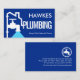 An all dark blue cover features a pipe-faucet home frame that is leaking water. The home pipe is connected to your business name "PLUMBING" alongside a slogan caption near the base. You can change both these captions to suit your own service needs. At the top of the card lies your prestigious name.