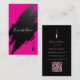 The back features a sleek black background with pink and white typography, plus a stylish pink lipstick silhouette for a touch of unique flair. Add your personalized details including name, title, phone number, email, address, website, and a fully customizable QR Code for quick access to your online presence.