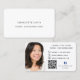 Un carte de visite classique sur un arrière - plan blanc clair. Personnalisez et ajoutez Votre nom, texte, photo de profil, coordonnées et votre propre code QR à votre adresse de site Web ou compte de médias sociaux. icône Facebook.