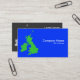 Un carte de visite avec une carte des îles britanniques. Détails de l'entreprise sur l'avant avec nom et coordonnées sur l'arrière dans un style tonal contrastant avec l'avant.