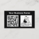 Carte de visite du constructeur ou de l'entrepreneur en bâtiment avec une illustration de dessin sur le devant. Illustration et code QR.