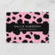 Carte de visite élégante, élégante et sophistiquée avec motif de vache de couleur rose. Design moderne et tendance, parfait pour les amateurs de poster de animal.