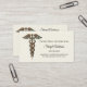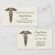 Carte de visite professionnel de soins médicaux pour personnes âgées ou âgées présentant un caduceus de style métallique sur un arrière - plan couleur crème avec une légère texture imprimée en pierre pour ajouter classe.
