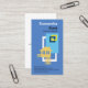 Le design présente une bordure blanche rectangulaire qui encapsule une maison créative avec des rebelles. Derrière la maison se trouve un bloc bleu de ciel qui héberge votre logo. Juste au-dessus, vous trouverez votre nom prestigieux en double couleur de blanc et de noir à côté du titre du poste. Vers la base, vous trouverez les coordonnées.