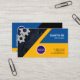 Une merveille de complexité de conception. Stupéfaction, lumineux et attaché pour vous apporter l'attention. Une carte pour vous inciter à se tenir dans une foule. Votre nom et fonction se reposent avec autorité dans un trapèze bleu élégant au coin haut droit de la carte. Une autre couche jaune fondamentale se tient dessus sur vos détails de logo et de contact au pied de la carte. Vers votre gauche, il y a un art abstrait d'un globe avec deux vitesses de machines au coin supérieur.