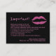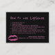 Comment utiliser les produits LipSense et des informations importantes pour les clients des distributeurs indépendants de produits de lèvres carte de visite puissant avec fausse parties scintillant lèvres rose chaud et lettrage sur arrière - plan noir solide avec un look glamour fantaisie. Adaptez le texte et personnalisez avec votre nom et vos coordonnées à l'avant et à l'arrière. — cartes de visite correspondants disponibles ! — Convient à tous les produits de beauté nécessitant des instructions "comment appliquer".