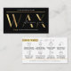 Le traitement de beauté est important ! Assurez-vous que vos clients prennent bien soin de leur peau avant et après un traitement d'épilation avec ces cartes postcure modernes de cire de cheveux. Cette carte d'instructions de soins en noir et or comprend des icônes de soins pour chaque étape, un design élégant en faux or et de l'espace pour les détails de votre salon, l'ajout parfait à votre conception de papeterie de studio cire.