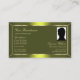 Carte De Visite Jaune Shimmer vert olive avec Monogramme et photo