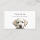 Les cartes de visite adorables de toilettage d'animaux de compagnie avec un chien illustré se tiennent en face de près.