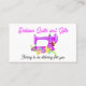 Carte de visite couture et couture sur mesure en blanc, avec une machine à coudre fantaisie rose vif et des fleurs colorées. Personnalisez tous les champs de texte correspondant à vos besoins professionnels.