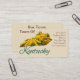 Bluegrass, bourbon, chevaux et, eh bien, poulet frit viennent à l'esprit quand je pense au Kentucky. Le Kentucky est connu sous le nom de "Bluegrass State" (l'État de Bluegrass), surnom donné à l'herbe bleue que l'on trouve dans de nombreux pâturages à cause de la terre fertile. L'une des principales régions du Kentucky est la région de Bluegrass dans le centre du Kentucky, qui abrite deux de ses principales villes, Louisville et Lexington. Il s'agit d'une terre aux environnements divers et aux ressources abondantes, dont le plus long réseau de grottes au monde, le parc national Mammoth Cave, la plus grande longueur de voies navigables et de cours d'eau dans les États contigus, et les deux plus grands lacs artificiels à l'est du fleuve Mississippi. Le Kentucky possède plus de kilomètres d'eau navigables que tout autre état de l'union, autre que l'Alaska. Le Kentucky produit 95% de l'offre mondiale de whisky bourbon, et le nombre de barils de bourbon vieilli dans le Kentucky (plus de 5,7 millions) dépasse la population de l'état. Bourbon a été un marché en croissance - avec la production de bourbon du Kentucky en augmentation de 170 pour cent entre 1999 et 2015. La plus grande journée de course à cheval américaine, le Kentucky Derby, est précédée par le Derby Festival de deux semaines à Louisville. KFC a été fondé par le colonel Harland Sanders, un entrepreneur qui a commencé à vendre du poulet frit de son restaurant de bord de route à Corbin, dans le Kentucky, pendant la Grande Dépression. Sanders a identifié le potentiel du concept de franchisage de restaurant, et la première franchise "Kentucky Fried Chicken" a ouvert (étonnamment) en Utah en 1952. Bien que techniquement un Commonwealth, le Kentucky était le 15ème État à rejoindre l'union. Ce design rend hommage à cet état spectaculaire. Le contour de l'état est rempli de jolies fleurs jaunes de la verge d'or, la fleur d'État du Kentucky. C'est superposé avec le "bluegrass" profond "Kentucky". Ces cartes de visite adorables et à personnaliser entière sont un excellent choix pour les guides touristiques du Kentucky, les agences de voyage du Kentucky ou toute entreprise associée au tourisme du Kentucky.