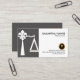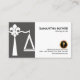 Une conception simple avec la carte délimitée dans deux sections. Vers la gauche dans des mensonges d'une colonne de gris échelles de conception de justice créées du fleur-De-lis. La couverture blanche du côté droit a votre nom et fonction prestigieux au dessus. Près de la base il y a un logo de stylo d'or à côté des détails de contact.
