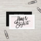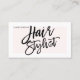 Un carte de visite moderne et élégant élégant de coiffeur avec la typographie élégante de style de lettrage de main de manuscrit sur un pastel rougissent bloc rose de couleur avec la frontière blanche et un arrière - plan noir au fond. Les deux l'arrière - plan sont entièrement personnalisable