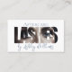 Gardez votre jeu de fouet solide avec cette carte de suivi correspondante, conçue pour compléter votre image de marque d'entreprise en fougue. Avec la même typographie frappante "LASHES" avec une photo de gros plan spectaculaire, cette carte combine style et fonction. La mise en page propre fournit des conseils essentiels d'extension de foudre de manière claire et professionnelle - parfait pour les artistes de foudre, les esthéticiens et les professionnels de la beauté qui veulent maintenir les résultats clients et reflètent une marque haut de gamme et cohésive.
