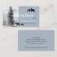 Un carte de visite d'aventure moderne en plein air avec la phrase : "laissez l'aventure commencer" avec des ours à pied et un majestueux pin et chaîne de montagnes. Un style rustique moderne et tendance pour un guide en plein air. Un arrière - plan gris bleu fumé et un type de script.
