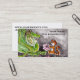Un dragon amical et vert discute son amas des gemmes avec un chat tigré orange dans cette bande dessinée, illustration d'aquarelle. Attirez l'attention et encouragez les clients à se tenir sur votre carte de visite avec l'art gai ! Customisez le dos simple de la carte avec votre propre information, ou laissez l'abondance de la pièce pour des notes.