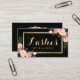 Carte De Visite Lashes Script maquillage moderne Black Gold Floral