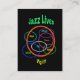 Pour ceux qui aiment le jazz, cette carte de collection d'artiste est une célébration même du meilleur du be-bop et des ères de courrier-coup de poing. Les cercles colorés de rouge, de bleu, de pourpre, le blanc et la turquoise enferment certains des grands musiciens. Tout est placé par le texte jaune et vert sur un arrière - plan noir pur.