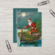 Un beau carte de visite vintage comportant Père Noël la nuit dans un bateau a rempli de jouets.