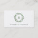Ces cartes de visite modernes ont une couronne de feuilles vert aquarelle et quelques petits fruits avec votre monogramme au centre, sur un arrière - plan blanc propre.