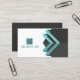 Carte de visite moderne avec les icônes et url des médias sociaux - un endroit pour votre code QR à l'avant, le tout au fusain et aqua - lignes géométriques étonnantes