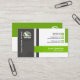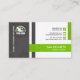 Une conception simple portée sur les colonnes rectangulaires. Dans la colonne vert clair près de la base de la carte, repose votre nom et fonction ; Une flèche translucide indique votre nom à la gauche. Directement en haut, il y a un rectangle vert vertical qui lie les boutons sociaux d'icône pour vos détails de carte. Au mur gauche, il y a une grande colonne grise qui a le logo et une raison sociale inversée par le côté ; une flèche grise incorporée se repose au milieu. Au verso, la carte a deux parties. Le morceau vert supérieur a le logo et la raison sociale. La colonne blanche directement sous a les détails d'affaires avec son option de tagline de slogan. Si vous décidez de télécharger une photo au lieu d'un logo, les dimensions sont le pix 1.000 x 1.000. Cette conception a un bon nombre d'option qui vous permet de customiser la carte. Cette carte serait grande particulièrement pour ceux impliquées dans les canaux de distribution, la logistique, entreposage, lançant etc. sur le marché.