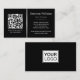 Moderne, élégant, carte de visite noir avec logo personnalisé et modèles de code QR. Le texte et le code QR sont séparés par un dégradé de couleur gris argenté imprimé (pas un vrai papier). Les polices, les couleurs de police et les couleurs arrière - plans peuvent être modifiées avec l'outil de conception.