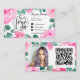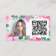 Aquarelle couleur rose et vert gras couleur cheveux maquillage photo logo qr code avec un script brossé typographie ajoutez votre photo d'entreprise. Ajoutez vos médias sociaux. Avec une police de script de signature élégante, toutes les couleurs sont modifiables, ajoutez votre logo. Avec de jolies fleurs roses et une aquarelle botanique verte feuillue.