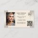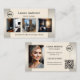 Carte de visite avec 4 de vos propres photos dans un portfolio de vos projets préférés, encadré par un design beige gris neutre. Un modèle pour votre logo ainsi que le code QR personnalisé sont ajoutés. Personnalisable à d'autres fins.